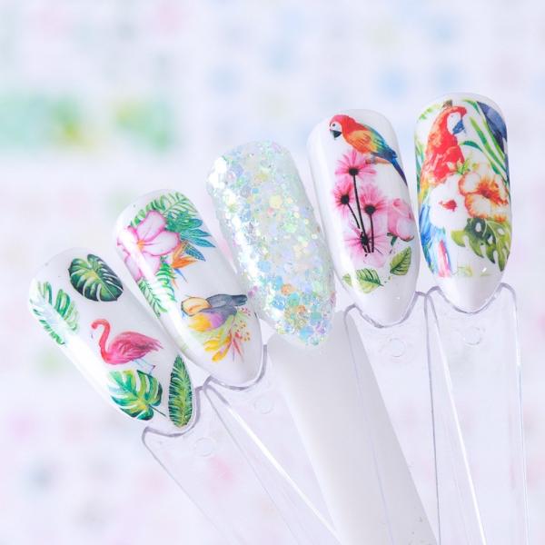 12枚セット フラミンゴ 熱帯植物 モンステラネイルシール お得クーポン発行中 ウォーターネイルシール ジェルネイル セルフネイル トロピカル 南国 ピンク 夏 レジン 鳥