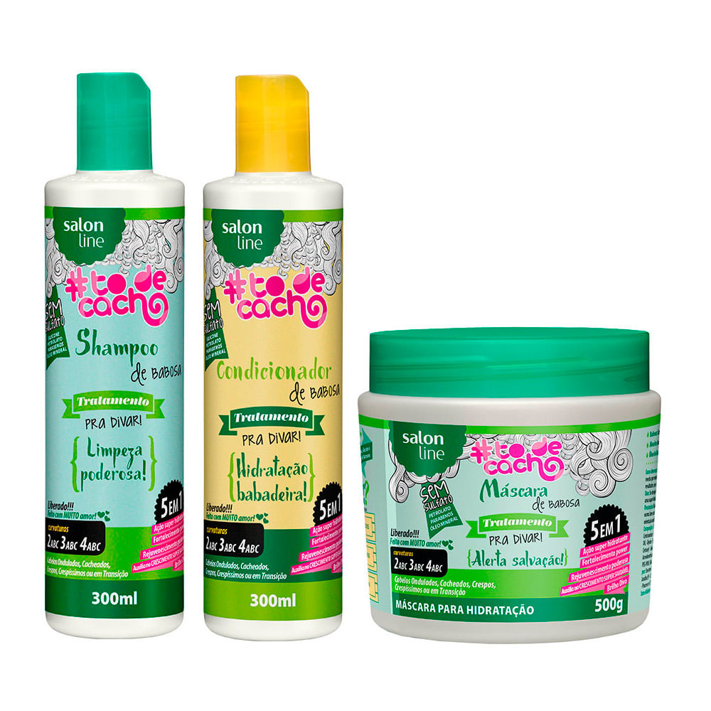 Kit Shampoo Condicionador E Mascara Babosa Tratamento Pra Divar Todecacho Salon Line Perfumaria Seiki