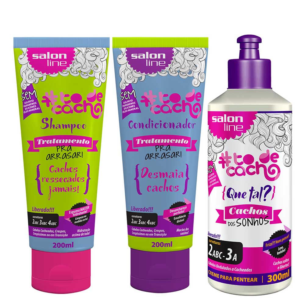 Salon Line Kit Arrasar Shampoo Condicionador E Creme Para Pentear Cachos Dos Sonhos Todecacho Compre No Shopfacil Com